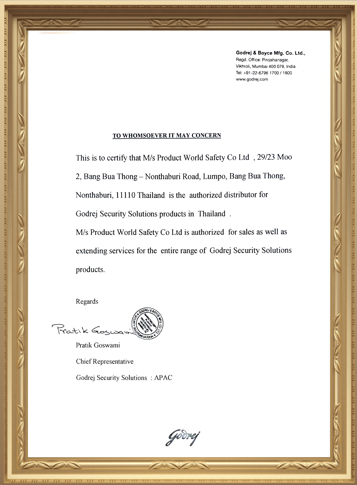 Authorized importer and distributorin Thailand.