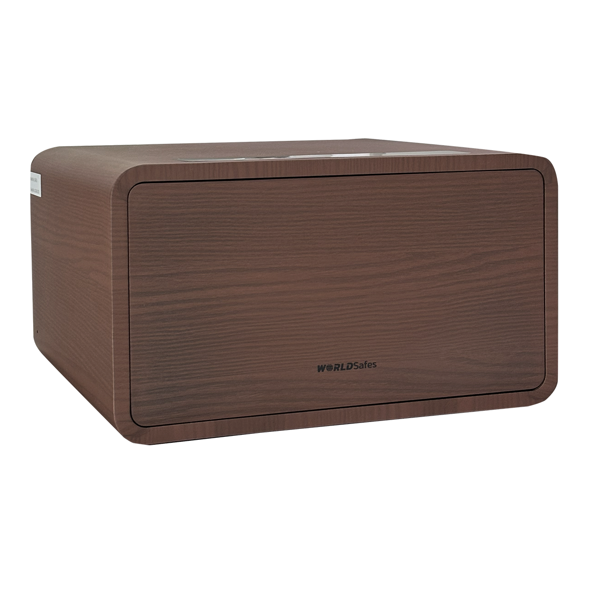 Superior security with a classic wood-grain design combined with a modern digital touch control panel. Experience perfect storage with a soft-material drawer divided into organized compartments, featuring an automatic locking system and smart security that supports both PIN codes and fingerprints in one.