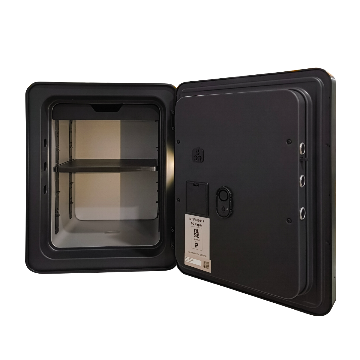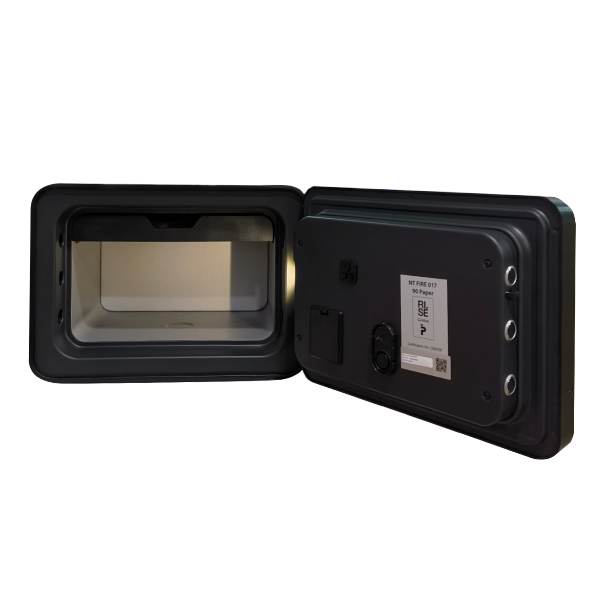 The burglary resistance is further improved by a tight connection between the body and the door with 2 static bolts & 3 active bolts working by motor.