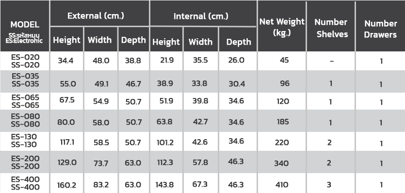 - 1 hour fire protection certified by NT-Fire 017 60P, UL Class 350, KS 1Hr. at 927'C (Model ES020-030 and SS020-030 only)