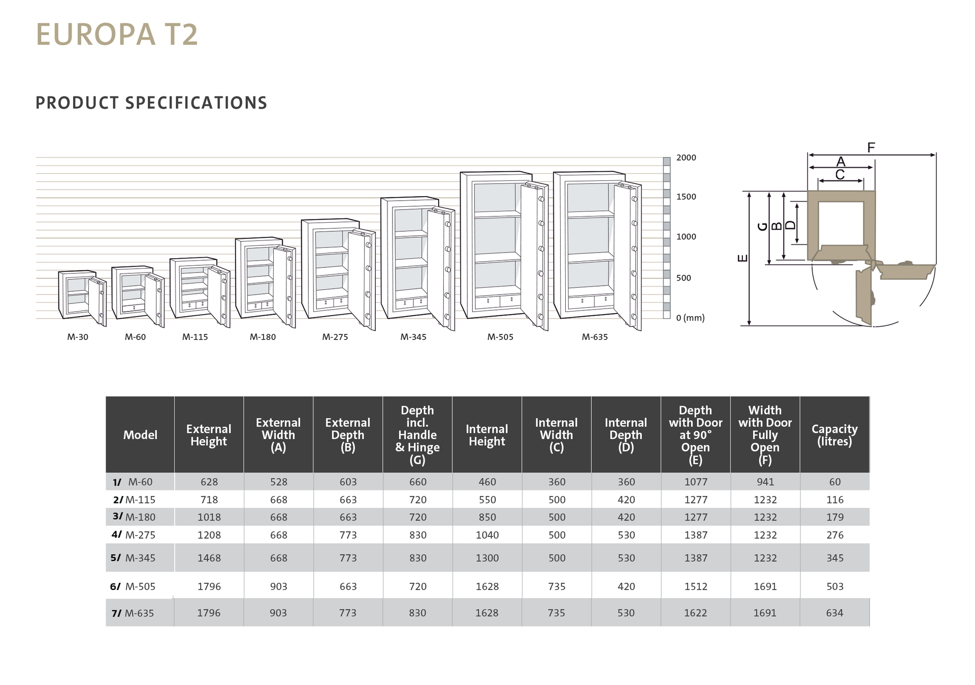 - 146 mm. overall door thickness.