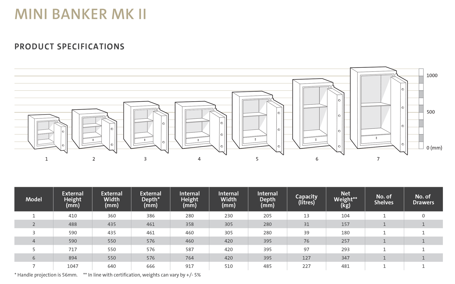 - Mini Banker MKII has been tested to a level corresponding to the Japanese Industrial Standard JIS S1037 with fire resistance for up to 60 mins.