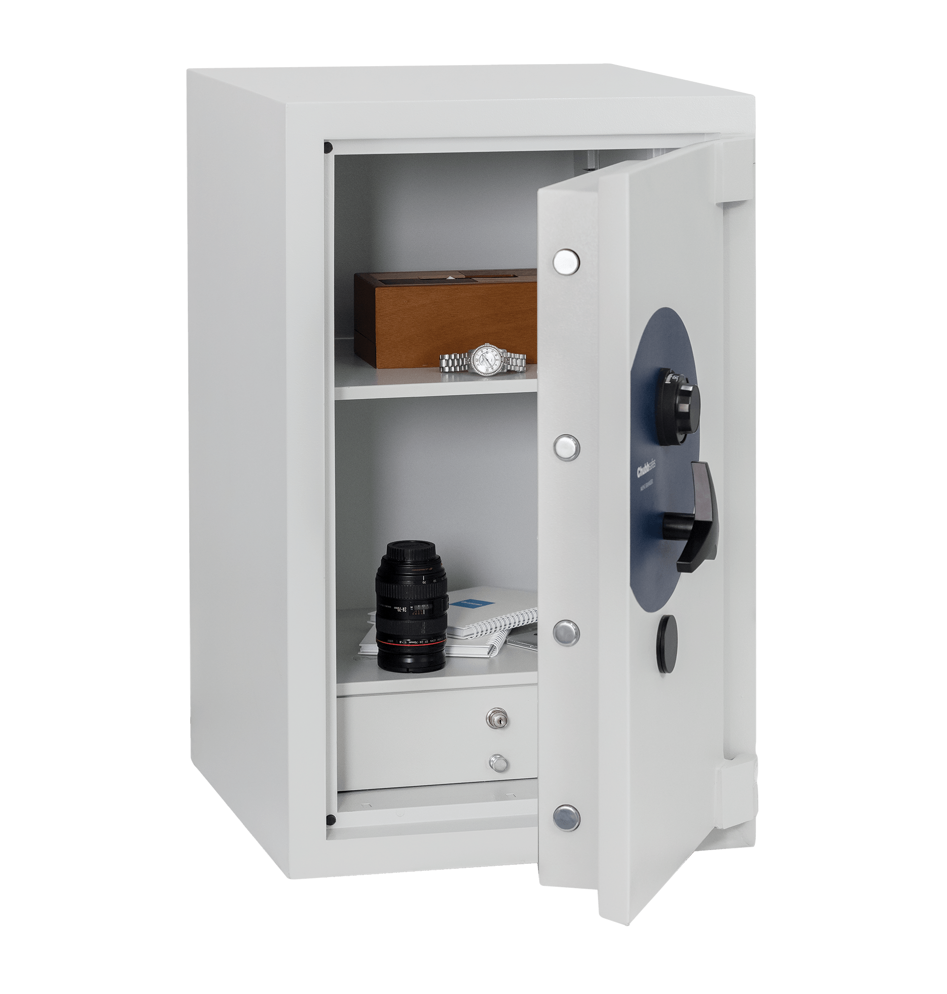 - Body barrier thickness of 65mm; constructed from steel, weldedthroughout and filled with specially formulated Chubbsafes barriermaterial.