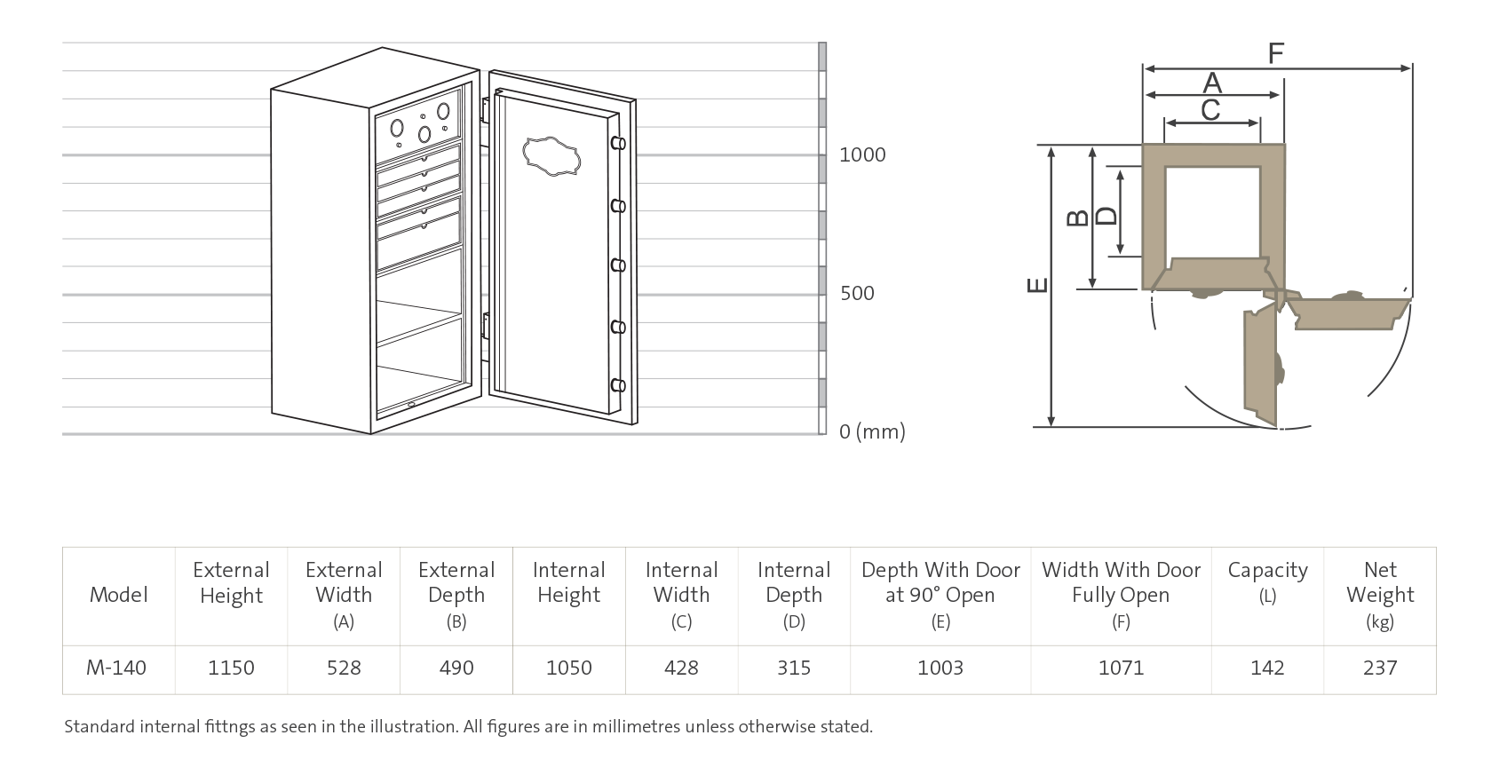- การรับรองการป้องกัน:ได้รับการรับรองตามมาตรฐานยุโรปเวอร์ชันล่าสุด ป้องกันการโจรกรรม EN 1143-1 เกรด 1 T2 และ EN 1047-1 Class 60P ป้องกันเอกสารจากไฟไหม้ได้นาน 60 นาที
