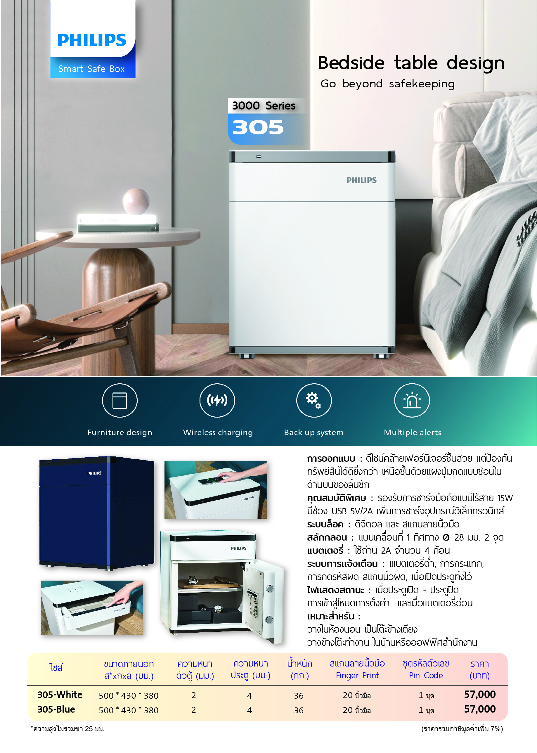 การออกแบบให้มีดีไซน์คล้ายเฟอร์นิเจอร์ช่วยให้พื้นที่ใช้สอยเพิ่มมากขึ้น ในขณะเดียวกันก็มีน้ำหนักเบาลง ทำให้ 3000 Series เป็นตัวเลือกที่ดี สามารถใช้แทนโต๊ะข้างเตียง นอกจากจะรักษาสิ่งของมีค่าของคุณให้ปลอดภัยแล้ว 3000 Series ยังรองรับการชาร์จแบบไร้สายอีกด้วย ซึ่งมอบประสบการณ์การรักษาความปลอดภัยที่เป็นเลิศ