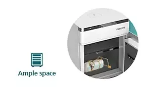 อย่างสะดวกและง่ายดาย ลิ้นชักมีช่องเพื่อแยกจัดเก็บของ เส้นใยที่อ่อนนุ่มภายในจะปกป้องสิ่งของจากการกระทบกระแทก เพื่อความอุ่นใจของคุณ
