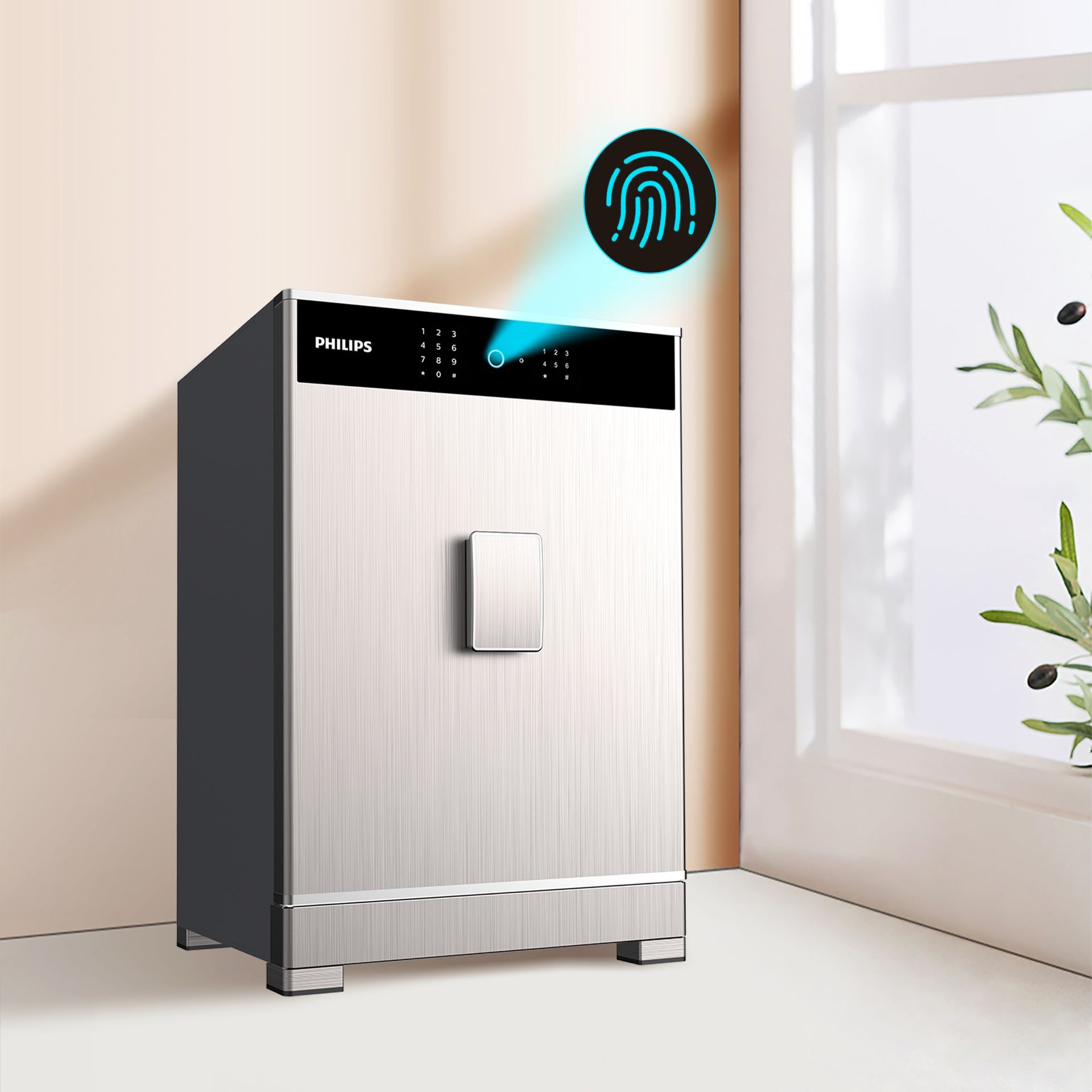 แตกต่างจากตู้เซฟแบบดั้งเดิมที่ใช้กุญแจ ตู้เซฟรุ่นนี้ใช้ เซ็นเซอร์ลายนิ้วมือแบบเซมิคอนดักเตอร์ และ แผงปุ่มกดแบบสัมผัส ทำให้สามารถปลดล็อกได้ทั้งด้วยลายนิ้วมือและรหัส PIN เพียงแค่แตะเบา ๆ เพื่อปลุกระบบและยืนยันตัวตนได้อย่างรวดเร็ว ไม่จำเป็นต้องใช้กุญแจอีกต่อไป ทำให้ได้รับประสบการณ์การปลดล็อกที่ราบรื่นและรวดเร็วกว่าเดิม