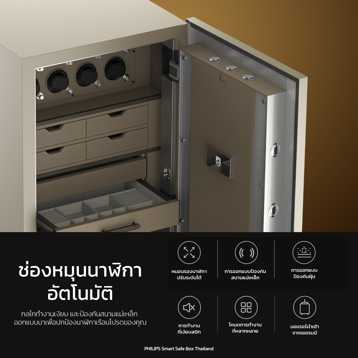 - ระบบล็อค : ดิจิตอล และ ระบบการสแกนเส้นเลือดฝ่ามือ (Palm vein recognition)