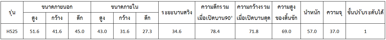 - ระบบล็อคแบบอิเล็คทรอนิกส์ 6 ตัวเลข พร้อมกุญแจฉุกเฉินแบบ AVA LOCK