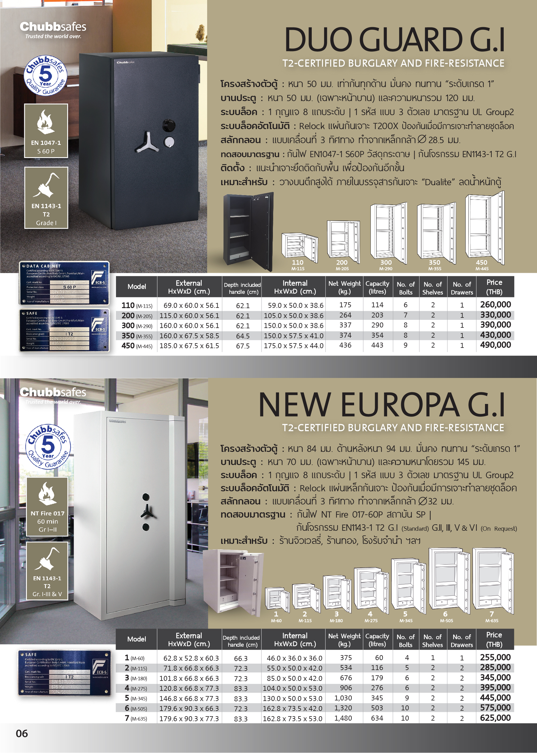 - มาตรฐานการรับรอง (Certification Standard): EN 1143-1 และ NT Fire 017 – 60 Paper