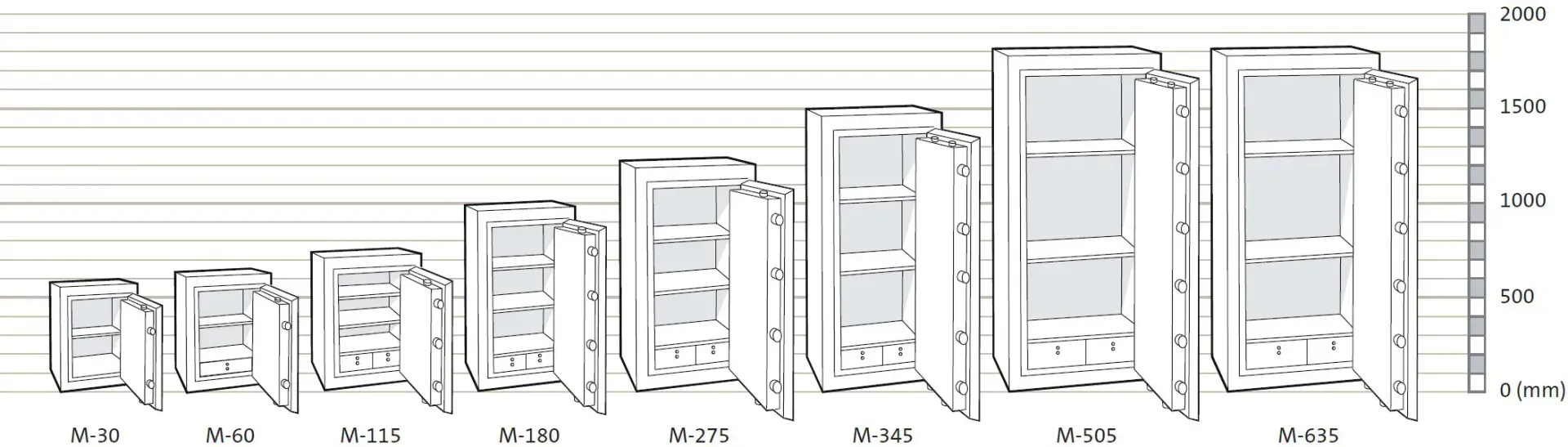 - ตู้นิรภัยความมั่นคงสูงระดับมืออาชีพ ออกแบบมาเพื่อปกป้องทรัพย์สินมีค่าด้วยระดับการป้องกันสูงสุดที่ผ่านการรับรอง มีให้เลือกในระดับ Grade I T2 โดยได้รับการรับรองจาก ECB•S ตามมาตรฐานยุโรปที่เข้มงวด EN 1143-1 T2"