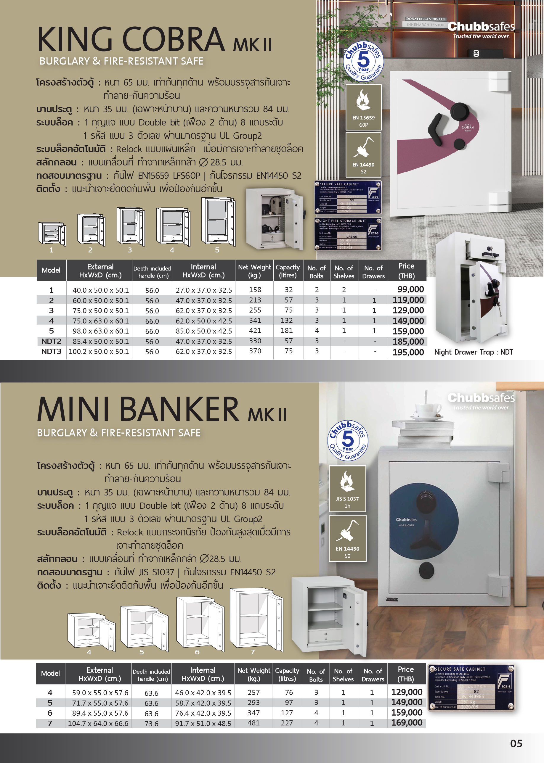 - ระดับการป้องกัน: Level S2 และ 60P (กันไฟ 60 นาที)