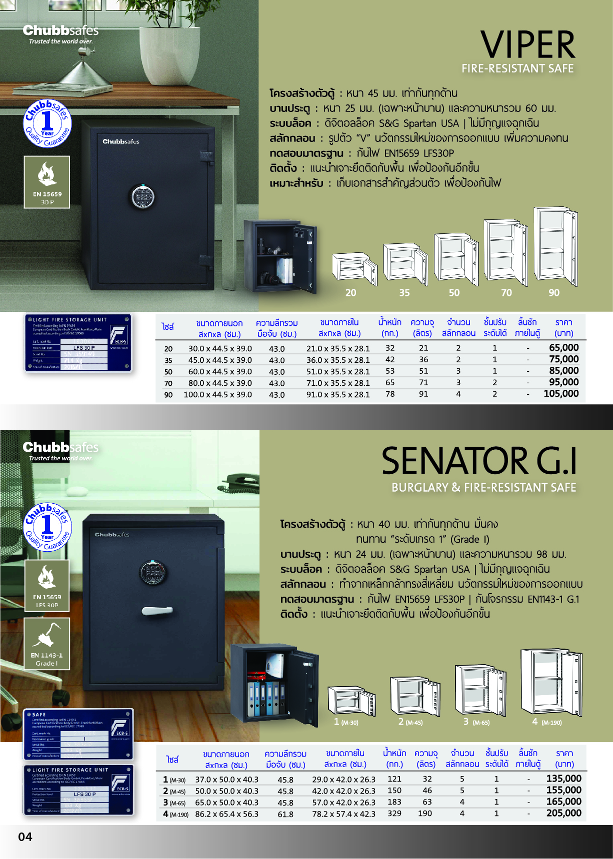 - การปกป้องแบบคู่ในตู้เดียว: ผ่านการรับรองมาตรฐาน EN 1143-1 ระดับ Grade I ด้านการป้องกันโจรกรรม และมาตรฐาน EN 15659 ระดับ LFS 30P ด้านการป้องกันอัคคีภัย
